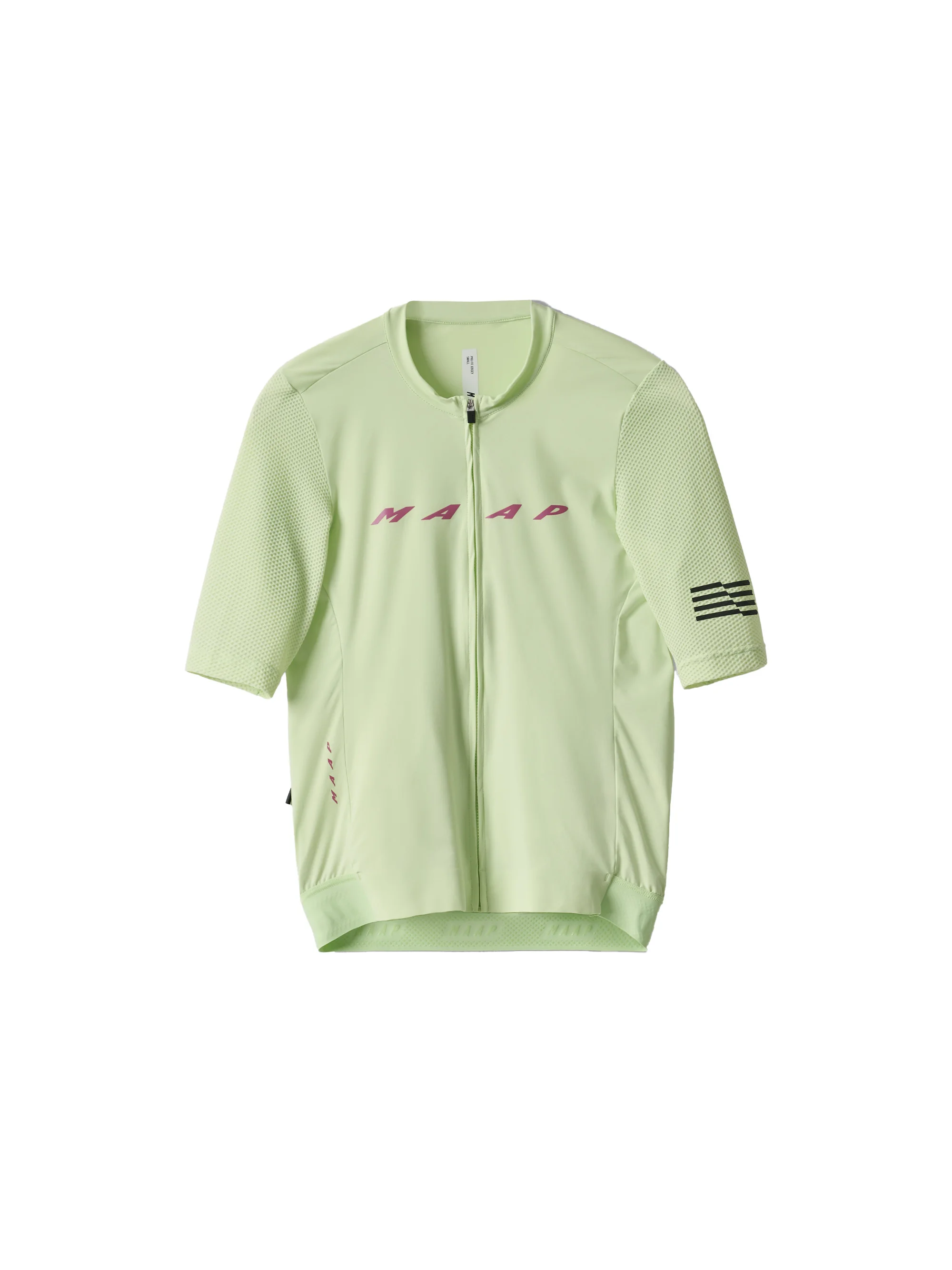 Our best-selling Evade Pro Base Jersey 2.0 is made with sustainable materials and ultra-soft, moisture-wicking fabrics. Designed for a fit so comfortable, you'll forget you’re wearing it- even when the pace heats up. Details - Recycled Yarns - MAAP Honeycomb - Moisture Wicking - bluesign® APPROVED Fabric - Breathable - Reflective Graphics - Italian Fabric Features - The high-performance silhouette of our Race Fit features a longer sleeve length, low-profile collar and tailored panelling for speed and precision. - Ultra-soft and recycled knitted Italian fabric across the main body offers comfort and performance without compromising MAAP’s commitment to sustainability. - Advanced breathability achieved through premium recycled honeycomb mesh sleeves. - A bonded front-hem and rear pocket edge construction reduces bulk for an elevated fit. - The bonded low-profile internal rear pocket reduces bulk while providing secure storage.Additional storage with a sleek and secure low-profile internal rear zip pocket. - Extra visibility in low light conditions with reflective print transfers and tabs. Specifications - Product Weight: 150 g - Main Fabric Content: MAIN BODY: 70% POLYAMIDE (RECYCLED), 30% ELASTANE, SLEEVES: 78% POLYAMIDE (RECYCLED), 22% ELASTANE - Fit: Race - Temperature Range: 18 - 35 DEGREES - Riding Conditions: Hot - SKU: MPMJE221925_MEAD