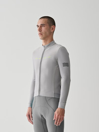 Experience exceptional warmth in cold conditions with the Evade Thermal Long Sleeve Jersey 2.0. Crafted from super-soft Italian fabrics for heat retention, it features moisture-wicking and breathable technology to ensure elevated comfort, even during intense rides. Details - Thermal Regulation - Moisture Wicking - bluesign® APPROVED Fabric Features - The high-performance silhouette of our Race Fit features advanced sleeve fit, low-profile collar and tailored panelling for speed and precision. - Brushed fleece-line fabric offers a super-soft skin feel, while a water-repellant DWR coating keeps light moisture at bay. - More secure storage and an elevated fit with streamlined bonded front hem and rear pocket-edge construction. - Base layers are protected from entangling in the zip with a bonded and contoured inner zip guard. - Additional storage with a sleek and secure low-profile internal rear zip pocket - Extra visibility in low light conditions with reflective print transfers and tabs. Specifications - Product Weight: 150 g - Main Fabric Content: 32% Polyester, 52% Polyamide, 16% Elastane - Fit: Core - Temperature Range: 10 - 20 DEGREES - Riding Conditions: Cold - SKU: MPMLS221325_ALOY