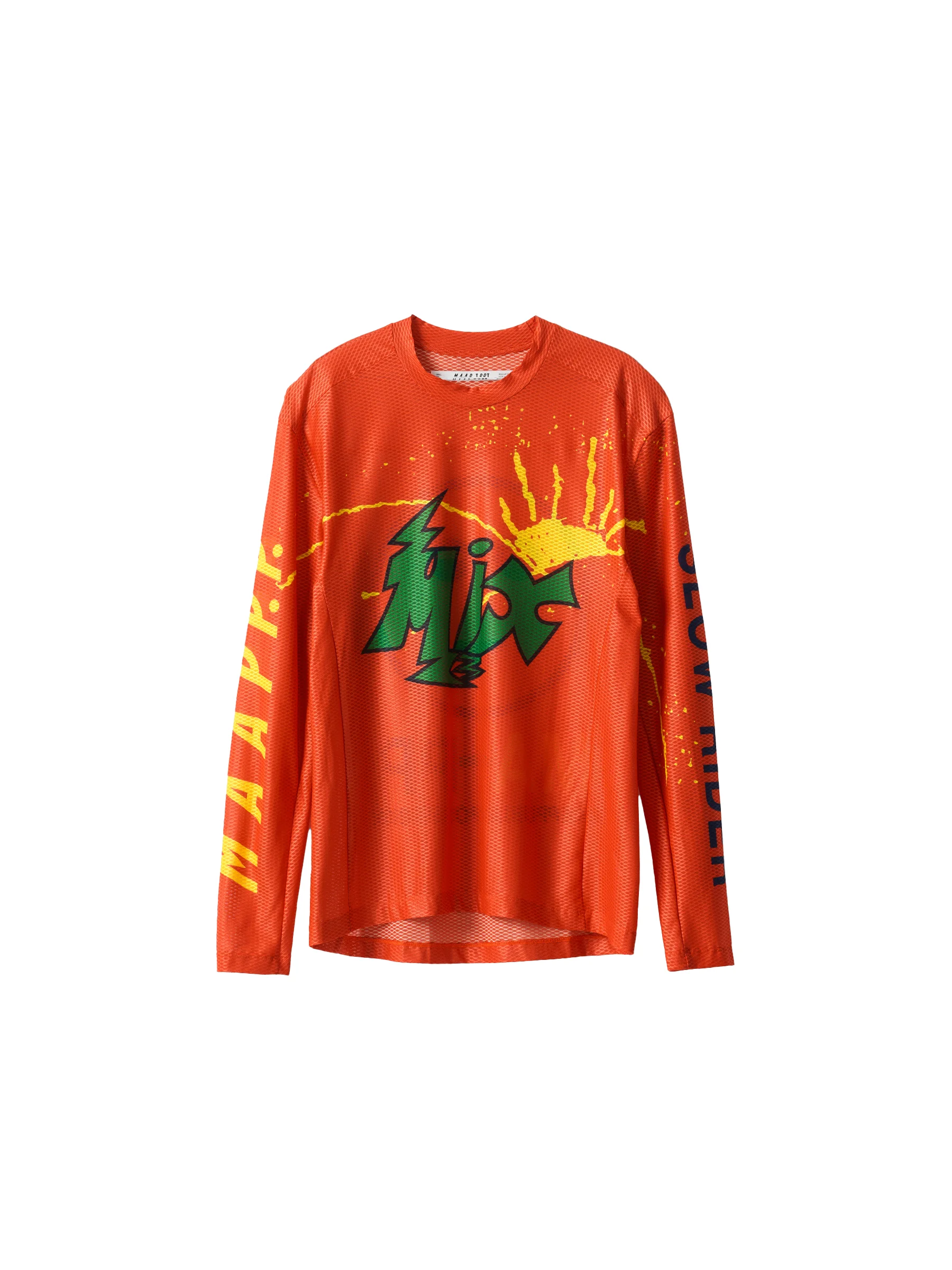 Breathe easy in the MAAP + Public Possession Air Mesh Long Sleeve Tee. Ultra-light, high-airflow mesh and a relaxed fit keep you moving in comfort, on-bike or off-duty. Details - Relaxed LS Tee Fit - High airflow mesh fabrication - Engineered body sublimation print - bluesign® APPROVED fabrications Specifications - Product Weight: 130g - Main Fabric Content: 94% Polyester, 6% Elastane - Fit: Relaxed - Temperature Range: 22 - 40 DEGREES - Riding Conditions: Hot - SKU: MPMTO252725_WRMR