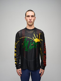 Breathe easy in the MAAP + Public Possession Air Mesh Long Sleeve Tee. Ultra-light, high-airflow mesh and a relaxed fit keep you moving in comfort, on-bike or off-duty. Details - Relaxed LS Tee Fit - High airflow mesh fabrication - Engineered body sublimation print - bluesign® APPROVED fabrications Specifications - Product Weight: 130g - Main Fabric Content: 94% Polyester, 6% Elastane - Fit: Relaxed - Temperature Range: 22 - 40 DEGREES - Riding Conditions: Hot - SKU: MPMTO252725_BLAK