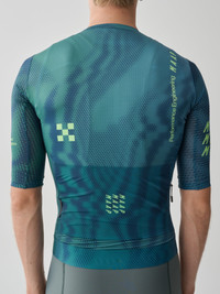 The Privateer Russell Finsterwald Pro Air Jersey 3.0 delivers amplified aeration with strategically placed open mesh zones optimising breathability in warmer weather. The soft-to-skin advanced fabric architecture is lighter, cooler and dialled to perform. Details - Moisture Wicking - Lightweight - Breathable - 4 Way Stretch - Recycled Yarns - Italian Fabric Features - Optimised airflow with open mesh sleeves and micro-perforated fabrics, designed for warmer weather. - Minimised construction and added stability with a wider bonded front hem. - A sleek and stable back pocket system with a bonded pocket edge. - Secure storage for small essentials with an added zippered stash pocket. Specifications - Product Weight: 150 g - Main Fabric Content: Main: 89% Recycled Polyester 11% Elastane, Sleeves: 96% Recycled Polyester 4% Elastane, Side Panel: 94% Recycled Polyester 6% Elastane - Fit: Race - Temperature Range: 22 - 40 DEGREES - Riding Conditions: Hot - SKU: MPMJE254125_GREN