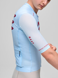 The Pro Air Jersey 3.0 is precision-designed for peak breathability, featuring targeted open mesh zones that enhance airflow during high-intensity efforts. Details - Moisture Wicking - Lightweight - Breathable - 4 Way Stretch - Recycled Yarns - Italian Fabric Features - Optimal airflow in warmer conditions with micro-perforated fabrics engineered with majority recycled yarns. - Integrated seamless front hem with back hem gripper for added stability. - Sleek back pocket system with minimal bulk. Specifications - Product Weight: 110g - Main Fabric Content: Main: 89% Recycled Polyester 11% Elastane, Sleeves: 96% Recycled Polyester, 4% Elastane, Side Panel: 94% Recycled Polyester, 6% Elastane - Fit: Race - Temperature Range: 22 - 40 DEGREES - Riding Conditions: Hot - SKU: MPMJE260226_CERU