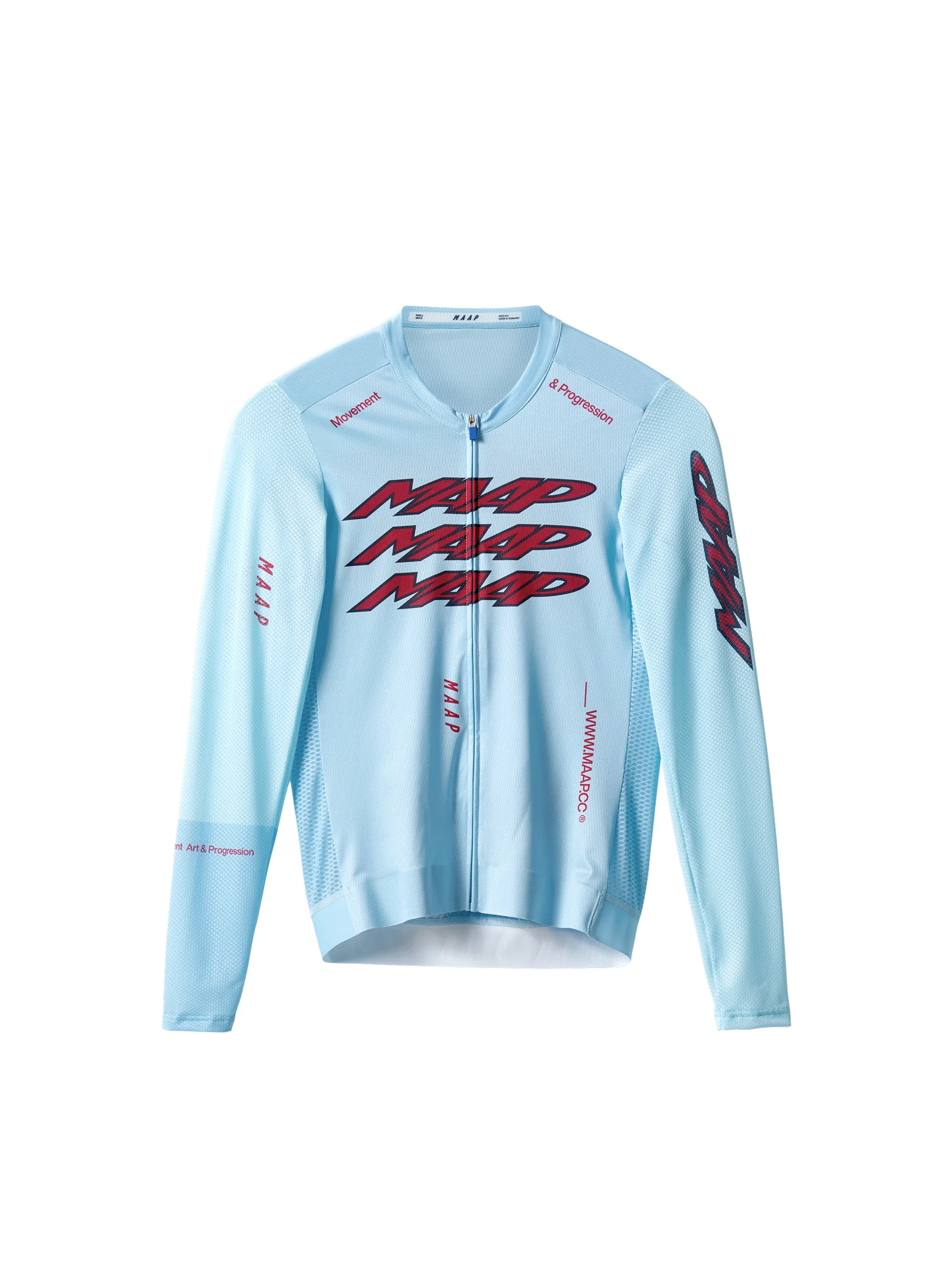 The Pro Air Long Sleeve Jersey 3.0 is precision-designed for peak breathability, featuring targeted open mesh zones that enhance airflow during high-intensity efforts. Details - Moisture Wicking - Lightweight - Breathable - 4 Way Stretch - Recycled Yarns - Italian Fabric Features - Optimal airflow in warmer conditions with micro-perforated fabrics engineered with majority recycled yarns. - Integrated seamless front hem with back hem gripper for added stability. - Sleek back pocket system with minimal bulk. Specifications - Product Weight: 130g - Main Fabric Content: Main: 89% Recycled Polyester 11% Elastane, Sleeves: 96% Recycled Polyester, 4% Elastane, Side Panel: 94% Recycled Polyester, 6% Elastane - Fit: Race - Temperature Range: 22 - 40 DEGREES - Riding Conditions: Hot - SKU: MPMLS260226_CERU