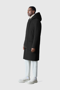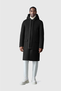 ABRAHAM is a double-face wool duffle coat with a long regular-fit silhouette. Shearling lining adds luxe detail to hood and placket with hidden snaps. The timeless design is constructed with hand finished seams, large patch pockets and a center vent at back hem. A cozy trans-seasonal staple with enduring quality. DETAILS - Long regular-fit duffle coat - 100% double-face - RWS responsible wool standard - Handmade - Non-removable hood lined in shearling - Large patch pockets - Vent at center back - Welt pockets - Shearling Lined placket with hidden snaps and CF zipper - Unlined - Down to -5ºC SIZE & FIT - REGULAR – Classic fit allowing comfort and style. - Designed to be worn with heavier layers. - The model is 6'2" (187 cm) and wears a size 40. - Coat length from shoulder to hem: 42.75'' / 109 cm. COMPOSITION & CARE - Shell: 100% rws certified wool. Lining: 100% sheep leather. Combo lining: 100% polyester. - Dry clean by leather specialist using oil-based solvent only. Do not use perchloroethylene.