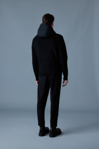 ANDREW is a light down quilted jacket with a non-removable hood. Cut to a regular fit, super soft knit adorns sleeves, back, and waistband for a hybrid style. Zip waist pockets provide ample storage while signature M at chest adds subtle detailing. A highly wearable modern performance piece. - Light down hybrid jacket - GRS-certified down - Recycled quilted light down front body - Knit sleeves and back panel - Non-removable hood with adjustable drawcord - Centre front zip closure - Zip waist pockets - Rib knit cuffs and hem - Edge painted leather pocket re-inforcements - Signature M leather patch - Regular fit SIZE & FIT - REGULAR – Classic fit allowing comfort and style. - Designed to be worn with heavier layers. - The model is 6'2" (187 cm) and wears a size L. - Coat length from shoulder to hem: 26'' / 66 cm. COMPOSITION & CARE INSTRUCTIONS - Shell: 82% recycled nylon, 18% elastane/spandex. Combo shell: 42% wool, 42% acrylic, 14% polyester, 2% elastane/spandex. Lining: 82% recycled nylon, 18% elastane/spandex. Filling: 90% goose down, 10% feathers. - Dry clean by leather specialist using oil-based solvent only. Do not use perchloroethylene.