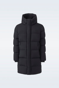 ANTOINE-CITY is a recycled technical down jacket for men crafted with an Agile 360 2-way stretch shell for enhanced comfort and unrestricted movement. Engineered for warmth in the coldest temperatures, it is water-resistant and repellent, and fully lined. Storm cuffs, insulated pockets, and storm visor deliver ultimate protection against the elements while under-arm eyelets provide ventilation on warmer days. A monochromatic quilted winter essential, designed for enduring functionality. - Recycled technical down jacket - Agile 360 2-way stretch shell - Traceable duck down - 800 fill power - Arctic Rated: Down to -25°C - Non-removable hood - Quilted body and sleeves - Under-arm eyelets for ventilation - Fully lined - Hood with adjustable storm visor - Centre front closure with zippers, placket, and hidden snaps - Storm cuffs - Adjustable drawcord at bottom hem - Regular fit - Waterproof zippers - Inside pocket - Silicone rubberized MACKAGE branding at chest SIZE & FIT - REGULAR – Classic fit allowing comfort and style. - Designed to be worn with heavier layers. - The model is 6'2" (187 cm) and wears a size 40. - Length from shoulder to hem: 39'' / 99 cm. COMPOSITION & CARE INSTRUCTIONS - Shell: 82% recycled nylon, 18% elastane/spandex. Combo: 82% polyester, 18% elastane/spandex. Lining: 82% recycled nylon, 18% elastane/spandex. Filling: 90% goose down, 10% feathers. Water-repellent & Water-resistant. - Dry clean by leather specialist using oil-based solvent only. Do not use perchloroethylene.
