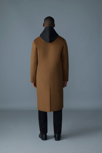 BECKETT is a handcrafted double face wool Balmacaan overcoat, cut to a modern and relaxed silhouette. The front closure is detailed with horn buttons, adding to the traditional design. Functional elements include patch pockets for essentials and a center back vent for increased mobility. This overcoat is unlined, allowing for a flawless drape of the wool fabric. DETAILS - Handmade wool overcoat - RWS-certified wool - Balmacaan silhouette - Horn buttons - Button front closure - Patch pockets - Vent at center back - Unlined SIZE & FIT - RELAXED – Loose fit for on the go comfort. - Designed to be worn with heavier layers. - The model is 6'2" (187 cm) and wears a size 40. - Coat length from shoulder to hem: 46'' / 117 cm. COMPOSITION & CARE - Shell: 100% wool. Lining: 100% polyester. - Dry clean by a leather specialist using only oil-based solvent. Do not use perchloroethylene.