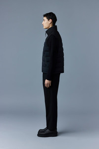 BOBBIE is an AGILE-360 ultra light recycled down vest for men with a zip front closure. The soft quilted shell is enhanced with 2-way stretch for a comfortable feel. Contrast twill accents the yoke and stand collar. Outsized insulated zip pockets offer storage while the drawcord hem adds warmth. A modern classic for failsafe year-round layering. DETAILS - AGILE-360 ultra light stretch down vest - Traceable and recycled duck down - 800 fill power - Light: Down to 0°C - 2-way stretch shell - Channel quilt stitching - Contrast twill yoke and collar - Center front zip closure with stand collar - Insulated long zip waist pockets - Adjustable drawcord at hem - Signature M logo patch on left chest - Regular fit SIZE & FIT - REGULAR – Classic fit allowing comfort and style. - Designed to be worn with heavier layers. - Coat length from shoulder to hem: 30'' / 76.2 cm. COMPOSITION & CARE - Shell : 82% polyamide/nylon, 18% elastane/spandex. Combo shell: 70% polyester, 30% rayon. Lining : 82% polyamide/nylon, 18% elastane/spandex. Filling : 90% duck down. 10% duck feathers. Water-repellent & water-resistant. - Dry clean by leather specialist using oil based solvent only. Do not use perchloroethylene.