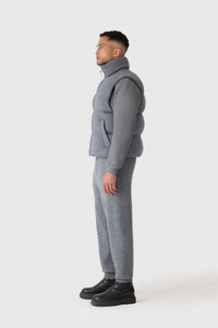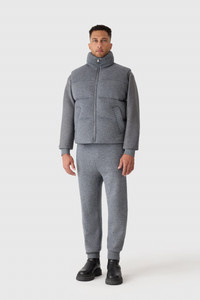 BRAXTON is a down-filled vest crafted from a premium cashmere wool blend, featuring a ribbed collar and yoke. Designed for transitional weather, it features a high funnel collar, adjustable bungee hem, and insulated zippered welt pockets. The relaxed silhouette blends refined warmth with modern, mixed-media styling. DETAILS - Cashmere wool blend down vest - Temperature rating: 0°C - Rib textured collar yoke and insulated waist pockets - Water-repellent and wind-resistant - Funnel collar with front zip closure - Adjustable bungee at hem - Inner welt pocket with zipper - Fully lined - “MACKAGE” embroidery at outer hem SIZE & FIT - RELAXED – Loose fit for on the go comfort. - Designed to be worn with heavier layers. - The model is 6'2" (187 cm) and wears a size 40. - Coat length from shoulder to hem: 25.5'' / 65 cm. COMPOSITION & CARE - Shell: 65% wool, 35% cashmere. Lining: 82% polyamide/nylon, 18% elastane/spandex. Filling: 90% down, 10% feathers. - Dry clean by leather specialist using oil based solvent only. Do not use perchloroethylene.