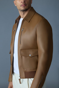 CHANCE-Z is a supple leather jacket cut to a streamlined regular fit. Spread collar, chest zipper pockets, and zip sleeve vents with gusset add classic detailing. Fully lined with ventilated under-arm eyelets for adaptable protection against the elements. A seasonless layer designed for luxe utility. DETAILS - Zip sleeve vents with gusset - Chest pocket with zipper - Rib-knit waistband - Center front zipper closure - Under-arm eyelets for ventilation - Inside pocket - Fully lined - Double-entry patch pocket with flap and snap - Regular fit SIZE & FIT - REGULAR – Classic fit allowing comfort and style. - Designed to be worn with heavier layers. - The model is 6'2" (187 cm) and wears a size 40. - Coat length from shoulder to hem: 24 ¼'' / 62 cm. COMPOSITION & CARE - Shell: 100% lamb leather. Combo: 96% polyester, 4% elastane/spandex. Lining: 100% polyester. - Dry clean by a leather specialist using only oil-based solvent. Do not use perchloroethylene.
