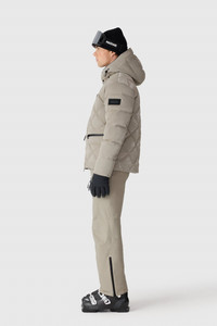 CILLIAN-GLO is a diamond and channel quilted ski jacket crafted from a high-gloss shell. Filled with recycled down for subzero warmth, it features a removable storm visor hood, integrated snow skirt, and adjustable technical trims. Interior suspenders and utility storage offer extra functionality to this alpine essential. DETAILS - High-gloss diamond and channel quilted shell - Temperature Rating: -15°C - Recycled down insulation - Removable hood with storm visor and adjustable drawcord - Collar lined in teddy - Adjustable storm cuffs with thumb loops - Water-resistant center front zipper - Chest pockets and waist pockets with zippers - Interior shoulder straps - Zippered ski pass pocket at left sleeve - Inside zippered pocket and goggle/key holder - Detachable powder skirt at waist - Underarm eyelets for ventilation - “MACKAGE” silicone ski patch at left sleeve - MACKAGE branded storm placket - Stand collar - Relaxed fit SIZE & FIT - RELAXED – Loose fit for on the go comfort. - Designed to be worn with heavier layers. - The model is 6'2" (187 cm) and wears a size 40. - Coat length from shoulder to hem: 28.25'' / 109 cm. COMPOSITION & CARE - Shell: 100% polyurethane.Lining: 82% recycled nylon, 18% elastane/spandex. Filling: 90% down, 10% feathers. Water-repellent, water-resistant. - Close zippers. Remove fur. Remove all removable trims. Wash in domestic machine in water not exceeding 30°C at delicate gentle setting. Wash inside out. Use mild detergent. Remove immediately after washing. Do not soak. Tumble dry at low heat with tennis balls until fully dried (1 to 3 hours). Do not wet-clean. Do not bleach. Do not wring. Do not iron or press. Do not steam. Do not dry clean.