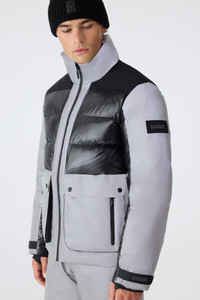 CODY-RF is a 2-layer down ski jacket crafted from a bold, reflective shell. It features a removable hood with storm visor, adjustable cuffs, and a detachable snow skirt for customizable protection. Built for high-performance comfort, it’s a modern alpine essential designed for visibility and warmth. DETAILS - Reflective mixed-media down ski jacket - 2-layer shell - Removable snap hood - Adjustable drawcord storm visor - Center front zip closure with stand collar - Insulated double-entry waist pockets - Active storm cuffs with thumbhole opening - Adjustable branded Velcro tab cuffs - Water-resistant zippers - Adjustable hood opening with bungee cord and stopper - "Mackage" silicone ski patch at left sleeve - Quilted body and sleeves - Detachable powder skirt - Inside pocket - Fully lined - Under-arm eyelets for ventilation - Regular fit - Temperature Rating: -15ºC SIZE & FIT - REGULAR – Classic fit allowing comfort and style. - Designed to be worn with heavier layers. - The model is 6'2" (187 cm) and wears a size 40. - Coat length from shoulder to hem: 27'' / 58 cm. COMPOSITION & CARE - Shell: 100% recycled nylon.Lining: 100% recycled nylon. Filling: 90% down, 10% feathers. water-repellent, . - Close zippers. Remove fur. Remove all removable trims. Wash inside out. Wash in domestic machine in water not exceeding 40°C, at normal setting. Use mild detergent. Remove immediately after washing. Do not soak. Tumble dry at low heat with tennis balls, until fully dried (1 to 3 hours). Do not wet-clean. Do not bleach. Do not wring. Do not iron or press. Do not dry clean.