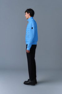 COLLIN-R is an transitional jacket for men with a classic bomber style. Expertly tailored to slim fit, it features a recycled lustrous nano down front contrasted with soft double face jersey sleeves and back. The rib knit stand collar and trims add tactical detailing and warmth. A modern multi-season layer with effortless style. - Mixed media transitional jacket - Bomber style - Recycled lustrous light nano down front - Double-face jersey sleeves and back - Centre front zip closure - Rib knit stand collar - hem and cuffs - Zip waist pockets - Signature M logo patch on left sleeve - Machine washable - Slim fit SIZE & FIT - SLIM – Our signature fit, closest to the body. - Designed to be worn with light layers, all while keeping you warm. - For heavier layering, we recommend sizing up. - The model is 6'2" (187 cm) and wears a size L. - Length from shoulder to hem: 26 ½'' / 67 cm. COMPOSITION & CARE INSTRUCTIONS - Shell: 53% cotton, 47% polyester. Combo Shell 1: 100% recycled nylon. Combo: 72% polyamide/nylon, 27% polyester, 1% elastane/spandex. Lining: 100% recycled nylon. Filling: 90% GRS duck down, 10% feathers. Water-repellent & water-resistant. - Close zippers. Remove fur. Remove the puller. Wash inside out. Wash in domestic machine in water not exceeding 40°C, at normal setting. Use mild detergent. Remove immediately after washing. Do not soak. Tumble dry low heat with tennis balls, until fully dried (1to 3 hours). Do not wet-clean. Do not bleach. Do not wring. Do not iron or press. Dry clean using oil based solvent only. Do not use perchloroethylene.