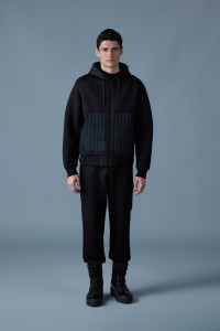 CRUZ is a zip up double-face jersey hoodie with vertical quilt combination throughout for a bold textured style. Cut to a relaxed fit, the drawcord at hood and rib knit cuffs and hem add classic styling. Lining made from organic cotton jersey offers extra comfort for days spent inside and out. A timeless ready-to-wear staple with updated luxe details. DETAILS - Light down and double-face jersey hoodie - Center front zipper closure - Tonal rib cuff and hem - Drawcord at hood - Lining made from recycled fibres and organic cotton - Seamed patch pockets - Relaxed-fit SIZE & FIT - RELAXED – Loose fit for on the go comfort. - Designed to be worn with heavier layers. - The model is 6'2" (187 cm) and wears a size L. - Coat length from shoulder to hem: 27.25'' / 69 cm. COMPOSITION & CARE - Shell: 53% cotton, 47% polyester. Combo shell: 82% recycled nylon, 18% elastane/spandex. Combo: 72% polyamide/nylon, 27% polyester, 1% elastane/spandex. Lining: 100% cotton. Filling: 90% goose down, 10% feathers. - Wash in domestic or commercial machine in water not exceeding 30°C at normal setting. Wash inside out. Use mild detergent. Wash with similar colors. Remove immediately after washing. Do not tumble dry. Iron with or without steam by hand, or press on commercial equipment, at low temperature (not exceeding 110°C). Do not bleach. Dry clean using oil-based solvent only. Do not use perchloroethylene.