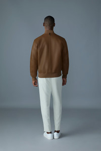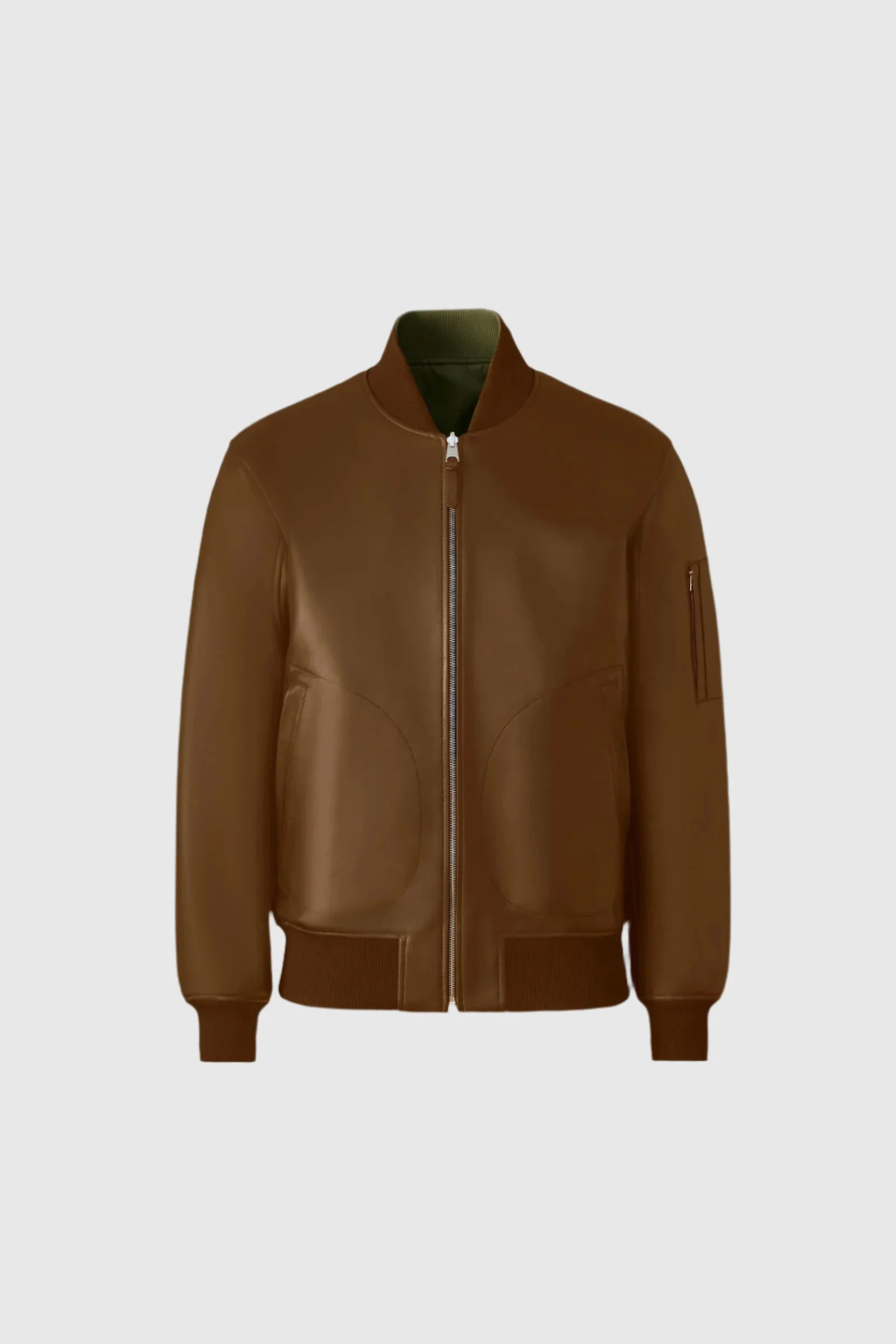 EASTON-SA is a versatile 2-in-1 reversible bomber jacket crafted from premium soft leather. cut to a street-style fit, it features an embroidered signature 'M' on the sleeve for added texture. One side boasts a sleek leather finish with a welted sleeve pocket, while the reverse side is adorned with lustrous satin and a metallic M emblem. Ribbed knit collar, cuffs, and hem enhance wearability. A timeless, all-season design with updated detailing. DETAILS - Leather bomber jacket - Reversible style - Center front zipper closure - Underarm eyelets for ventilation - Rib knit collar, cuffs, and hem - Pocket with welt and concealed zipper on the leather side sleeve - Signature metal M logo on satin side sleeve - Regular fit SIZE & FIT - REGULAR – Classic fit allowing comfort and style. - Designed to be worn with heavier layers. - The model is 6'2" (187 cm) and wears a size 40. - Coat length from shoulder to hem: 26 ¼'' / 67 cm. COMPOSITION & CARE - Shell: 100% lamb leather. Combo shell 1: 100% polyamide. Combo: 72% polyamide/ nylon, 27% polyester, 1% elastane/spandex. - Dry clean by a leather specialist using only oil-based solvent. Do not use perchloroethylene.