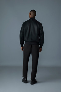 EASTON-SA is a versatile 2-in-1 reversible bomber jacket crafted from premium soft leather. cut to a street-style fit, it features an embroidered signature 'M' on the sleeve for added texture. One side boasts a sleek leather finish with a welted sleeve pocket, while the reverse side is adorned with lustrous satin and a metallic M emblem. Ribbed knit collar, cuffs, and hem enhance wearability. A timeless, all-season design with updated detailing. DETAILS - Leather bomber jacket - Reversible style - Center front zipper closure - Underarm eyelets for ventilation - Rib knit collar, cuffs, and hem - Pocket with welt and concealed zipper on the leather side sleeve - Signature metal M logo on satin side sleeve - Regular fit SIZE & FIT - REGULAR – Classic fit allowing comfort and style. - Designed to be worn with heavier layers. - The model is 6'2" (187 cm) and wears a size 40. - Coat length from shoulder to hem: 26 ¼'' / 67 cm. COMPOSITION & CARE - Shell: 100% lamb leather. Combo shell 1: 100% polyamide. Combo: 72% polyamide/ nylon, 27% polyester, 1% elastane/spandex. - Dry clean by a leather specialist using only oil-based solvent. Do not use perchloroethylene.