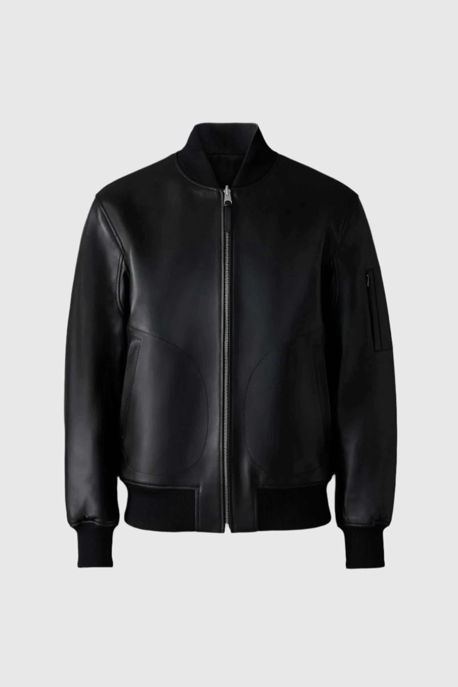 EASTON-SA is a versatile 2-in-1 reversible bomber jacket crafted from premium soft leather. cut to a street-style fit, it features an embroidered signature 'M' on the sleeve for added texture. One side boasts a sleek leather finish with a welted sleeve pocket, while the reverse side is adorned with lustrous satin and a metallic M emblem. Ribbed knit collar, cuffs, and hem enhance wearability. A timeless, all-season design with updated detailing. DETAILS - Leather bomber jacket - Reversible style - Center front zipper closure - Underarm eyelets for ventilation - Rib knit collar, cuffs, and hem - Pocket with welt and concealed zipper on the leather side sleeve - Signature metal M logo on satin side sleeve - Regular fit SIZE & FIT - REGULAR – Classic fit allowing comfort and style. - Designed to be worn with heavier layers. - The model is 6'2" (187 cm) and wears a size 40. - Coat length from shoulder to hem: 26 ¼'' / 67 cm. COMPOSITION & CARE - Shell: 100% lamb leather. Combo shell 1: 100% polyamide. Combo: 72% polyamide/ nylon, 27% polyester, 1% elastane/spandex. - Dry clean by a leather specialist using only oil-based solvent. Do not use perchloroethylene.