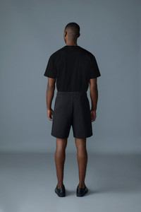 ELWOOD-R is a pair of double-face jersey shorts, designed for comfort and durability. Featuring an adjustable drawcord at the waist for a custom fit, these shorts are equipped with large patch pockets and a discreet inside card pocket for practical storage. The back welt pocket adds additional utility, while the 'MACKAGE' silicone branding on the pocket offers a touch of distinct style. DETAILS - Double-face jersey shorts - Adjustable drawcord at waist - Elasticized waistband for comfort - Large patch pockets and inside card pocket - Back welt pocket for added functionality - 'MACKAGE' silicone branding at pocket - Machine washable SIZE & FIT - REGULAR – Classic fit allowing comfort and style. - Designed to be worn with heavier layers. - Inseam: 6 ¾'' / 17 cm. COMPOSITION & CARE - Shell: 53% cotton, 47% polyester. Lining: 100% cotton. - Wash in domestic or commercial machine in water not exceeding 30°C at normal setting. Wash inside out. Use mild detergent. Wash with similar colors. Remove immediately after washing. Do not tumble dry. Iron with or without steam by hand, or press on commercial equipment, at low temperature (not exceeding 110°C). Do not bleach. Dry clean using oil-based solvent only. Do not use perchloroethylene.