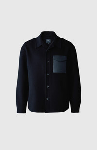 EMMANUEL is a luxurious double-face wool overshirt. Convertible collar and front button closure allow for adaptable styling while horn buttons and leather patch pocket with logo add elevated detailing throughout. A ready-to-wear staple with luxe detailing. DETAILS - Double-face wool overshirt - 100% responsbily-sourced wool - Convertible collar - Debossed "MACKAGE" at leather patch pocket - side entry waist pocket - Button front closure - Adjustable sleeve cuffs with buttons - Relaxed fit SIZE & FIT - RELAXED – Loose fit for on the go comfort. - Designed to be worn with heavier layers. - The model is 6'2" (187 cm) and wears a size 40. - Coat length from shoulder to hem: 31.5'' / 80 cm. COMPOSITION & CARE - Shell: 100% wool. Combo shell: 60% sheepskin, 40% polyurethane (PU). - Dry clean by leather specialist using oil-based solvent only. Do not use perchloroethylene.