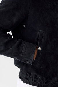 GIOVANNI-SU is a bomber jacket crafted from suede and cut to a regular fit. It features an action back construction for ease of movement and a center front zip closure for clean styling. Welt pockets with snap closures offer practical storage, while underarm eyelets provide ventilation for warmer spring days. An elevated essential in timeless soft suede. DETAILS - Suede bomber jacket - Fully lined - Center front zipper closure - Action back for comfort - Adjustable sleeve cuff with buttons - Inner welt pocket with zipper - Welt pocket with snap closure - Underarm eyelets for ventilation - Under collar tab with buttons - Elasticized waistband - Regular fit SIZE & FIT - REGULAR – Classic fit allowing comfort and style. - Designed to be worn with heavier layers. - The model is 6'2" (187 cm) and wears a size 40. - Coat length from shoulder to hem: 26'' / 67 cm. COMPOSITION & CARE - Shell: 100% suede. Lining: 100% viscose - Dry clean by leather specialist using oil based solvent only. Do not use perchloroethylene
