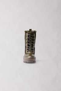 HERO-M is a handcrafted lace-up winter boot for men lined in luxuriously plush shearling for superior warmth. A waterproof membrane and signature rubber lug tread ensure traction and protection in the coldest temperatures. A stylish staple boot for winterproof utility. DETAILS - Mid-calf lace-up winter boot - Arctic Rated: Down to -35°C - Shearling-lined - logo on back heel - Waterproof membrane - signature rubber lug tread - Loop tab on back shaft - Handcrafted in Italy - Nylon and smooth grain leather shaft with rubber sole - Pull tab for easy grip - Signature M patch - Tested for Canadian winters COMPOSITION & CARE - Shell: 100% polyamide/nylon. Combo shell: 100% smooth grain leather. Sole: 100% rubber. Lining: 100% shearling. Water-resistant. - Wash gently by hand