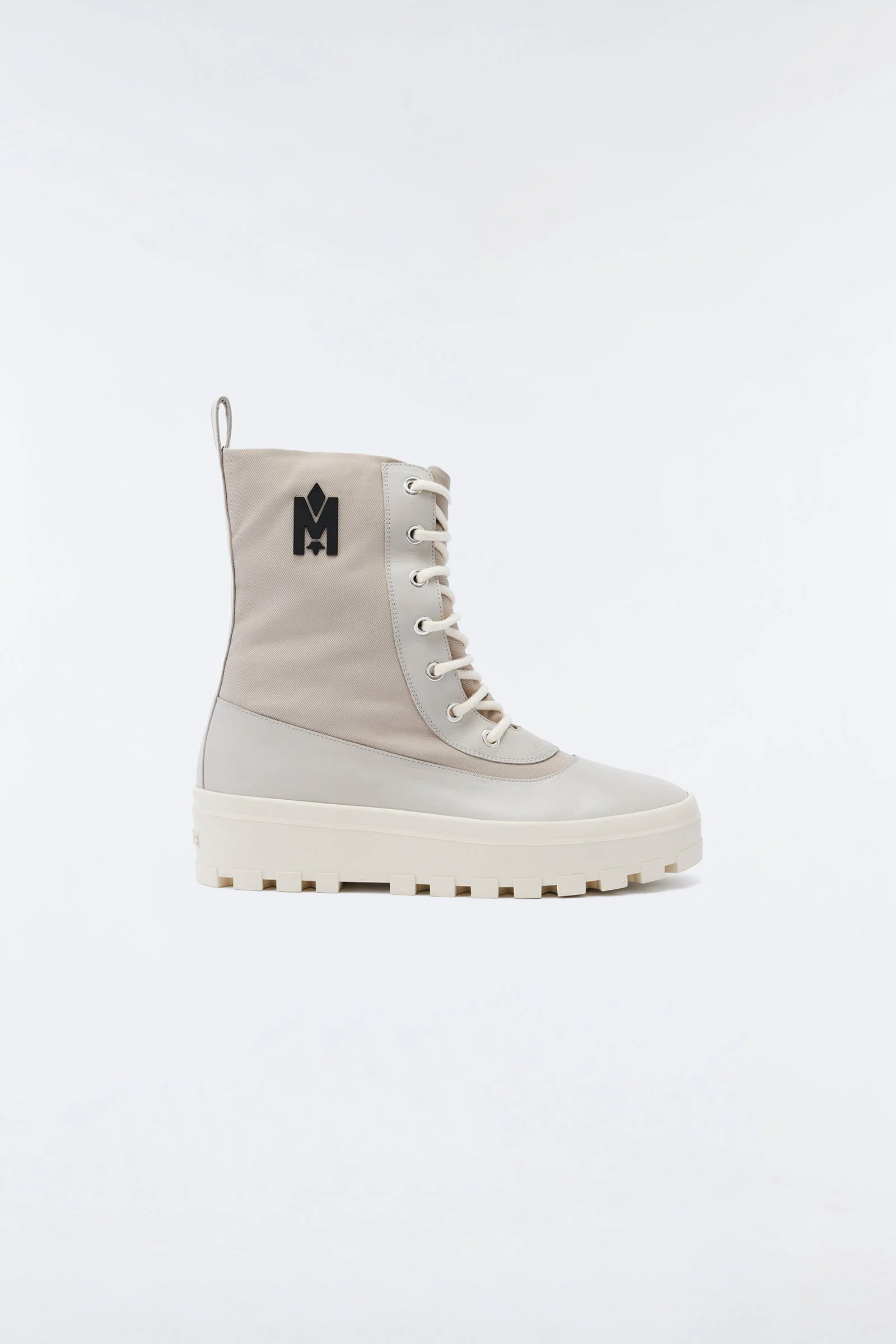 HERO-MU is a handcrafted lace-up winter boot for men with a waterproof membrane and signature rubber lug tread ensure traction and protection in the coldest temperatures. A stylish staple boot for winterproof utility. DETAILS - Mid-calf lace-up winter boot - Arctic Rated: Down to -35°C - logo on back heel - Waterproof membrane - signature rubber lug tread - Loop tab on back shaft - Handcrafted in Italy - Nylon and smooth grain leather shaft with rubber sole - Pull tab for easy grip - Signature M patch - Tested for Canadian winters COMPOSITION & CARE - Shell : 100% polyamide/nylon. Combo shell: 100% cow leather. Sole: 100% rubber. Water-repellent & water-resistant. - Wash gently by hand