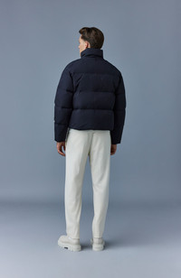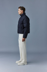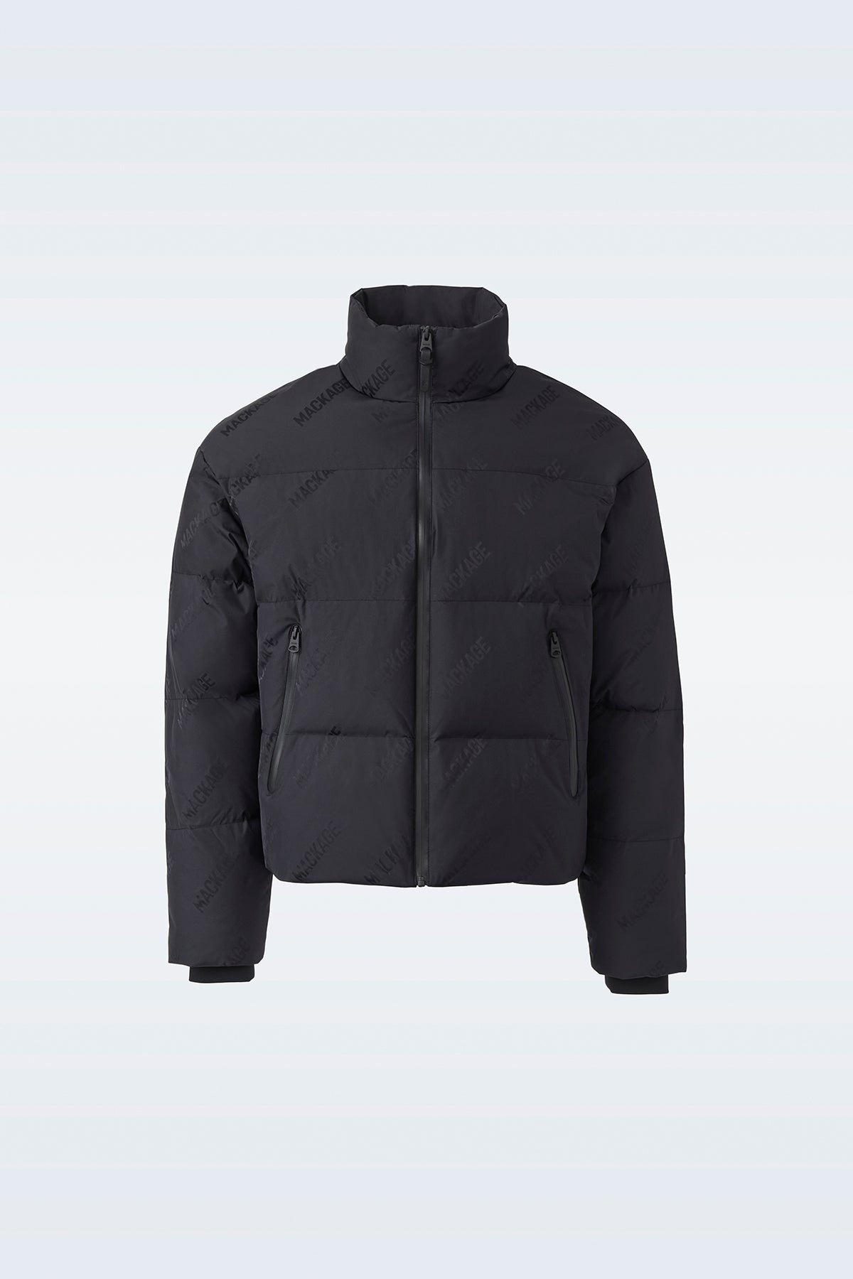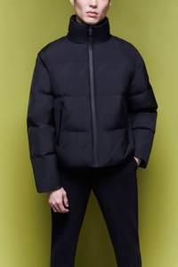 JOE-CITYMG is a medium-down jacket made for men with a bold Jacquard logo pattern throughout. Water-resistant and repellent with an adjustable drawcord on the bottom hem for customizable warmth and improved fit. Modern style meets weather-grade protection. - Medium down jacket - Responsible Down Standard (RDS) certified down - Moderate Cold: Down to -5°C - Water resistant and repellent - Adjustable drawcord in bottom hem - Water-resistant front zipper closure and waist pockets - Insulated pockets - Storm cuffs - Relaxed fit - Made in Italy SIZE & FIT - RELAXED – Loose fit for on the go comfort. - Designed to be worn with heavier layers. - The model is 6'2" (187 cm) and wears a size 40. - Length from shoulder to hem: 27'' / 68 cm. COMPOSITION & CARE INSTRUCTIONS - Shell: 80% polyamide/nylon, 20% polyurethane (PU). Lining: 82% recycled nylon, 18% elastane/spandex. Filling: 90% duck down, 10% feathers. Water-repellent & Water-resistant. - Dry clean by leather specialist using oil-based solvent only. Do not use perchloroethylene.