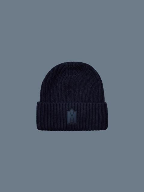 JUDE-MZ is a hand-knit toque for men & women crafted from ultra warm merino wool with a ribbed cuff. A turn-up brim revealing a tonal silicone logo adds luxe detailing. Compliment any winter fit with a standout accessory. DETAILS - Fleece lining band - Double layered merino wool for extra warmth and softness - Turn-up brim - Tonal logo patch COMPOSITION & CARE - Shell: 50% recycled wool, 30% recycled nylon, 20% acrylic. - Hand wash gently 30°C water. Use only non-chlorine bleach when needed. Dry flat. Do not tumble dry. Iron low temperature (not exceeding 110°C).