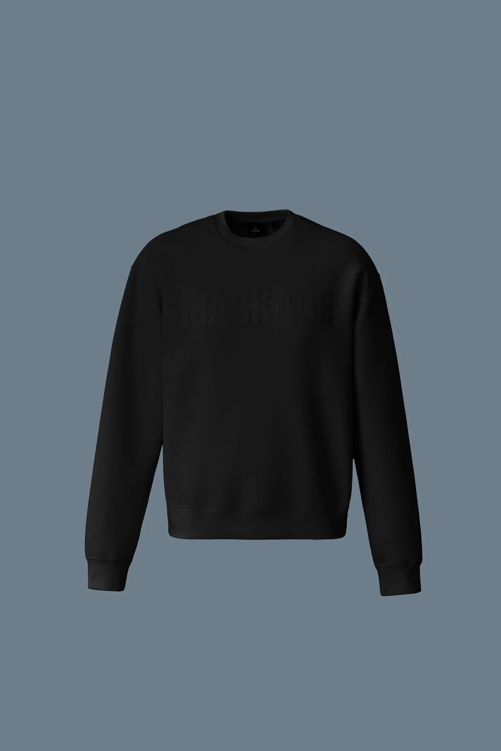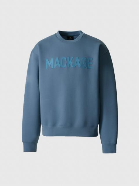 JULIUS is a crewneck sweatshirt crafted from ultra-soft and durable double-face jersey. Designed for a relaxed fit with dropped shoulders and a bold signature MACKAGE logo across the chest. Rib knit collar, cuffs, and hem offer a structured yet comfortable silhouette. A modern essential with everyday appeal. - Double-face Jersey crewneck sweater - Signature "MACKAGE" silicone logo at chest - Rib-knit collar, cuffs, and hem - Machine Washable - Relaxed-fit SIZE & FIT - RELAXED – Loose fit for on the go comfort. - Designed to be worn with heavier layers. - The model is 6'2" (187 cm) and wears a size L. - Jumper length from shoulder to hem: 27.75'' / 70 cm COMPOSITION & CARE INSTRUCTIONS - Shell: 53% cotton, 47% polyester. - Wash in domestic or commercial machine in water not exceeding 30°C at normal setting. Wash inside out. Use mild detergent. Wash with similar colors. Remove immediately after washing. Do not tumble dry. Iron with or without steam by hand, or press on commercial equipment, at low temperature (not exceeding 110°C). Do not bleach. Dry clean using oil-based solvent only. Do not use perchloroethylene.