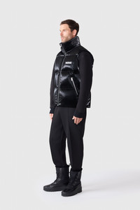 KANE-GLO is a high-gloss down vest crafted with GRS-certified recycled materials. Easy to layer, the generous funnel collar, oversized channel quilting, and hidden adjustable drawcord at hem bring warmth on cooler days. Fully lined for added comfort, it combines sustainable construction with clean styling. DETAILS - High-gloss down vest - Pockets with zippers - Center front zipper closure - Stand collar - Inside pocket - “MACKAGE” black/white patch on left chest - Fully lined - Temperature Rating: 0°C SIZE & FIT - REGULAR – Classic fit allowing comfort and style. - Designed to be worn with heavier layers. - The model is 6'2" (187 cm) and wears a size 40. - Coat length from shoulder to hem: 30'' / 64 cm. COMPOSITION & CARE - Shell: 100% polyurethane. Lining: 100% recycled nylon. Filling: 85% recycled down, 15% recycled feathers. Water-repellent, water-resistant. - Close zippers. Remove fur. Remove all removable trims. Wash in domestic machine in water not exceeding 30°C at delicate gentle setting. Wash inside out. Use mild detergent. Remove immediately after washing. Do not soak. Tumble dry at low heat with tennis balls until fully dried (1 to 3 hours). Do not wet-clean. Do not bleach. Do not wring. Do not iron or press. Do not steam. Do not dry clean.