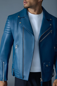 KENNETH is a leather biker jacket tailored to a regular fit silhouette. Asymmetrical zipper front closure, strategically placed padding and rivet detaling add utiliatarian styling throughout. Perfect for day-to-day wear with an action back for ease of movement and pockets throughout. Sophisticated style with practical features for an enduring piece. DETAILS - Leather biker jacket - Asymmetrical Zipper Front Closure - Chest Pocket with Zipper - Padded Details - Elbow Patches - Leather Belt Loops - Coin Pocket - Waist Pockets with Zippers - Padded Back Hem Panel with Stitch Through Detailing - 2-Way Center Front Zipper Closure - Action Back for Comfort - Inside Pocket - Rivet Pocket Detailing - Zip Sleeve Vents with Gusset SIZE & FIT - REGULAR – Classic fit allowing comfort and style. - Designed to be worn with heavier layers. - The model is 6'2" (187 cm) and wears a size 40. - Coat length from shoulder to hem: 25'' / 64 cm. COMPOSITION & CARE - Shell: 100% lamb leather. Lining: 100% acetate. - Dry clean by a leather specialist using only oil-based solvent. Do not use perchloroethylene.