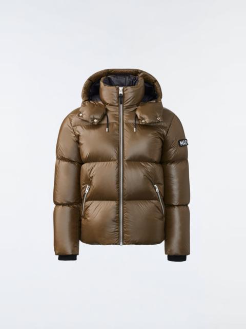 KENT-Z is a recycled down jacket with a high-sheen weatherproof shell for men. Channel quilting throughout with an adjustable storm visor and drawcord at hood for extended winter outings. Rib-knit cuffs and adjustable drawcord at hem to seal in the warmth for optimal comfort in colder weather. DETAILS - Down jacket - 100% recycled down - Lustrous nylon shell - Channel quilting - Adjustable drawcord storm visor - Centre front zip closure - Zip waist pockets - Adjustable drawcord hem - Rib knit storm cuffs - Signature wordmark patch on left sleeve - Machine washable - Relaxed fit SIZE & FIT - RELAXED – Loose fit for on the go comfort. - Designed to be worn with heavier layers. - The model is 6'2" (187 cm) and wears a size 40. - Length from shoulder to hem: 28 ½'' / 72 cm. COMPOSITION & CARE - Shell: 100% recycled nylon. Lining: 100% recycled nylon. Filling: 85% duck down, 15% feathers. Water-repellent & Water-resistant. - Close zippers. Remove fur, remove the puller. Wash inside out. Wash in domestic machine in water not exceeding 40°C, at normal setting. Use mild detergent. Remove immediately after washing. Do not soak. Tumble dry low heat with tennis balls, until fully dried (1 to 3 hours). Do not wet-clean. Do not bleach. Do not wring. Do not iron or press. Dry clean using oil-based solvent only. Do not use perchloroethylene.