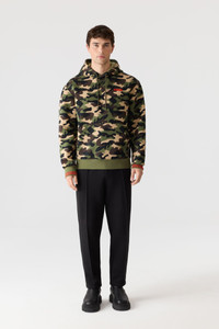 KRYSTIAN-CAMO is a classic hoodie crafted from double-face jersey in a bold camouflage print. Designed with a relaxed fit, it features a drop shoulder cut, kangaroo pocket, and adjustable hood for all-day comfort. Signature contrast detailing includes a red MACKAGE logo at chest and stripes at cuffs. DETAILS - Hoodie sweatshirt in camouflage print - Double-face jersey - Drop shoulder cut - Kangaroo pocket - Adjustable drawcord hood - "MACKAGE" silicone logo in red at chest - V-insert at neckline - Rib knit cuffs and hem - Red stripes at cuffs - Machine washable - Relaxed fit SIZE & FIT - RELAXED – Loose fit for on the go comfort. - Designed to be worn with heavier layers. - The model is 6'2" (187 cm) and wears a size L. - Coat length from shoulder to hem: 27.75'' / 75 cm. COMPOSITION & CARE - Shell: 53% cotton, 47% polyester. Lining: 100% cotton. - Wash in domestic or commercial machine in water not exceeding 30°C at normal setting. Wash inside out. Use mild detergent. Wash with similar colors. Remove immediately after washing. Do not tumble dry. Iron with or without steam by hand, or press on commercial equipment, at low temperature (not exceeding 110°C). Do not bleach. Do not dry clean.
