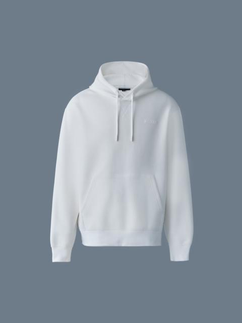 KRYSTIAN is a classic hoodie crafted to a relaxed fit from ultra soft double-face jersey. The kangaroo pocket and rib knit trims add timeless detail. A luxe loungewear essential for elevated streetstyle. DETAILS - Hoodie sweatshirt - Soft double-face jersey - Drop shoulder cut - Kangaroo pocket - Adjustable drawcord hood - "MACKAGE" silicone logo at chest - V-insert at neckline - Rib knit cuffs and hem - Machine washable - Relaxed fit SIZE & FIT - RELAXED – Loose fit for on the go comfort. - Designed to be worn with heavier layers. - The female model is 5'11" (180 cm) and wears a size S. - The male model is 6'2" (187 cm) and wears a size L. - Jumper length from shoulder to hem: 27.75'' / 70 cm. Based on size L. COMPOSITION & CARE - Shell: 53% cotton, 47% polyester. Combo: 72% polyamide/nylon, 27% polyester, 1% elastane/spandex. Lining: 100% cotton. - Wash in domestic or commercial machine in water not exceeding 30°C at normal setting. Wash inside out. Use mild detergent. Wash with similar colors. Remove immediately after washing. Do not tumble dry. Iron with or without steam by hand, or press on commercial equipment, at low temperature (not exceeding 110°C). Do not bleach. Dry clean using oil-based solvent only. Do not use perchloroethylene.