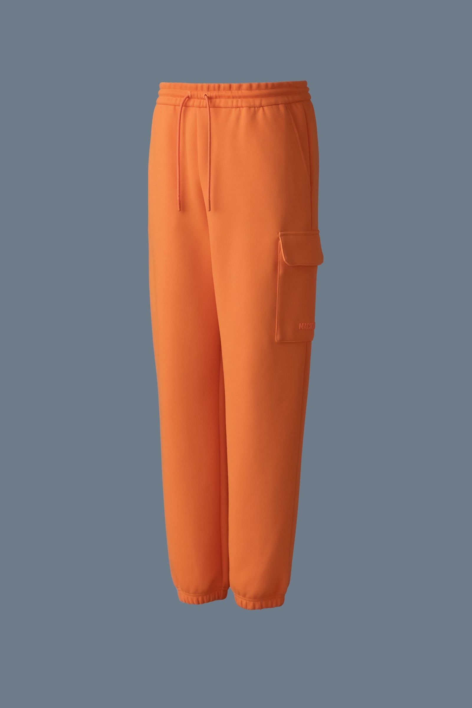 MARVIN-R are mixed-media sweatpants crafted from soft double face jersey. A remastered cargo style, it features a large flap patch pocket and elasticated cuffs for utilitarian comfort. Slash waist pockets add further functional detail. An ultra comfortable staple with elevated edge. - Sweatpants with cargo silhouette - Soft double face jersey - Contrast fabric detailing - Elastic waist with adjustable drawcord - Elastic cuffs - Flap patch pocket with signature mackage silicone branding - Slash waist pockets - Welt pocket at back - Machine washable - Classic fit SIZE & FIT - REGULAR – Classic fit allowing comfort and style. - Designed to be worn with heavier layers. - The model is 6'2" (187 cm) and wears a size L. - Inseam length: 28.75'' / 73 cm. Based on size M. COMPOSITION & CARE INSTRUCTIONS - Shell: 53% cotton, 47% polyester. Lining: 100% cotton. - Wash in domestic or commercial machine in water not exceeding 30°C at normal setting. Wash inside out. Use mild detergent. Wash with similar colors. Remove immediately after washing. Do not tumble dry. Iron with or without steam by hand, or press on commercial equipment, at low temperature (not exceeding 110°C). Do not bleach. Dry clean using oil-based solvent only. Do not use perchloroethylene.