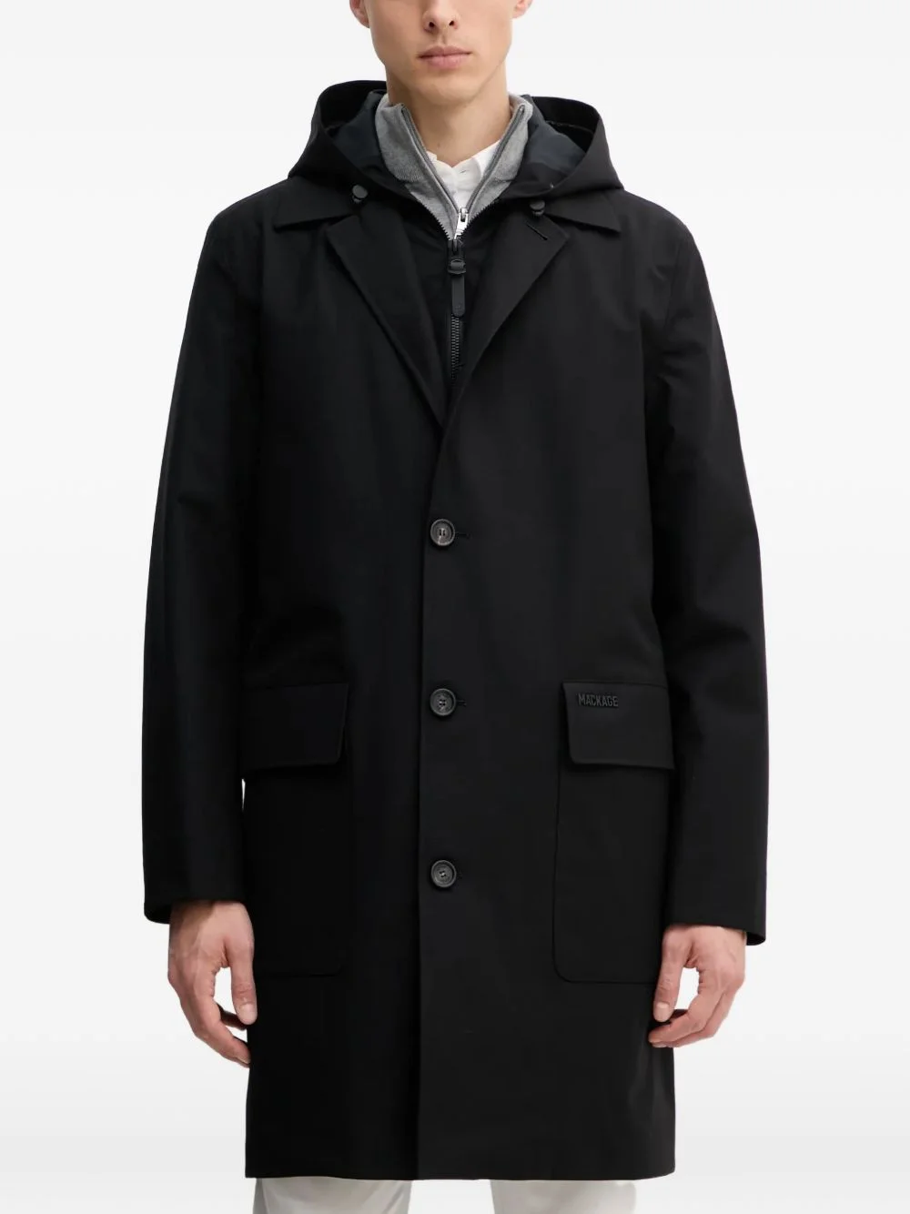 Mathias hooded pocket coat Highlights - Black - Front button fastening - Front flap pockets - Hooded - Long sleeves - Logo detail Imported Composition Outer: Polyester 70%, Rayon 30% Lining: Recycled Nylon 100%, Down 90%, Feather 10% Washing instructions Specialist Cleaning
