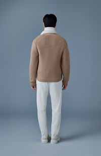 JONATHAN is a mixed-media jacket made from incredibly soft merino wool. Cut to a regular fit, shearling trim and knit sleeves add texture and dimension to the profile. A generous stand collar provides extra warmth on cold days while leather tape detailing throughout shows meticulous craftsmanship throughout. An elevated mid-layer with cozy trimmings. DETAILS - Mixed-media jacket - 100% knit merino wool - Shearling collar and panels - Knit sleeves - Center front zip closure with leather tape - Zip pockets at waist - Unlined - Regular fit SIZE & FIT - REGULAR – Classic fit allowing comfort and style. - Designed to be worn with heavier layers. - The model is 6'2" (187 cm) and wears a size L. - Coat length from shoulder to hem: 25'' / 64 cm. COMPOSITION & CARE - Shell: 100% merino wool. Combo shell: 100% sheepskin. Combo: 100% lamb leather. - Dry clean by leather specialist using oil-based solvent only. Do not use perchloroethylene.