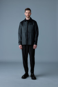 REMINGTON is an unlined overshirt made from luxurious two-tone colored leather. Sharply tailored, it features a classic collar and front button closure. Raw edge construction with edge paint, matching the interior color of the two-tone leather, is noticeable at the collar, cuffs, and chest pocket. Classic ready-to-wear staple with subtle elevated detailing throughout. - Two-tone colored leather overshirt - Side seam pocket - Edge painted finishing - Classic collar - Debossed "MACKAGE" at patch pocket - Button front closure - Adjustable sleeve cuffs with buttons - Regular fit - Horn Buttons SIZE & FIT - REGULAR – Classic fit allowing comfort and style. - Designed to be worn with heavier layers. - The model is 6'2" (187 cm) and wears a size 40. - Coat length from shoulder to hem: 29.5'' / 75 cm. COMPOSITION & CARE INSTRUCTIONS - Shell: 100% lamb leather. - Dry clean by leather specialist using oil-based solvent only. Do not use perchloroethylene.