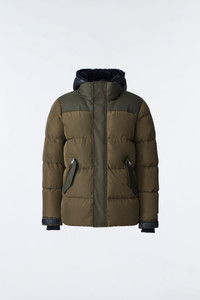 RILEY is a classic down jacket for men with a removable shearling bib and a hoodie for versatile protection. Featuring shirttail detailing at the back and contrasting yoke, placket and pocket flaps, Riley is water resistant, repellent, windproof, and breathable. A foundational, functional staple piece engineered for superior warmth. - Classic down jacket - Removable shearling bib with hoodie - Deep Cold: Down to -20°C - Shirttail on back - Contrast yoke, placket, and pocket flaps - Double-entry zipper waist pockets - Adjustable branded leather tabs at cuff - Storm cuffs in ribbed knit - Relaxed fit SIZE & FIT - RELAXED – Loose fit for on the go comfort. - Designed to be worn with heavier layers. - Coat length from shoulder to hem: 32.5'' / 82.55 cm. COMPOSITION & CARE INSTRUCTIONS - Shell : 100% polyester. Lining: 100% polyamide/nylon. Filling: 90% duck down, 10% feathers. Fur: 100% sheep. Water-repellent & water-resistant. - Dry clean by leather specialist using oil based solvent only. Do not use perchloroethylene.