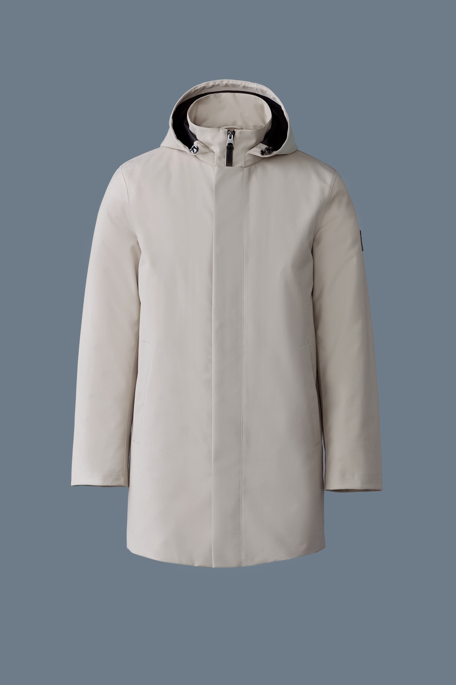 ROLAND is a 2-in-1 twill down parka for men with a hood and machine washable down liner. Water resistant and repellent, the windproof twill shell is cut from our breathable and air permeable 2-layer fabric. Engineered for maximum warmth in the most extreme temperatures, it boasts seam saled construction, storm cuffs, and insulated pockets. An uncompromising performance-ready piece with utilitarian detail. - Mid-length twill down parka - Traceable duck down - 800 fill power - Moderate Cold: Down to -10°C - Stand collar with non-removable hood - Seam sealed construction - Water resistant and repellent - 2-layer fabric with membrane - Windproof - Welt pockets at waist - Vents openings at back with hidden zipper - Two interior patch pockets - Placket with hidden snaps and leather snap tape - Regular fit SIZE & FIT - REGULAR – Classic fit allowing comfort and style. - Designed to be worn with heavier layers. - The model is 6'2" (187 cm) and wears a size 40. - Coat length from shoulder to hem: 35'' / 88.9 cm. COMPOSITION & CARE INSTRUCTIONS - Shell: 70% polyester, 30% rayon. Lining: 100% polyamide/nylon. Filling: 90% down, 10% feathers. Water-repellent & water-resistant. - Outer jacket: Dry clean by leather specialist using oil-based solvent only. Do not use perchloroethylene. - Removable liner: Close zippers. Remove fur, remove the puller. Wash inside out. Wash in domestic machine in water not exceeding 40°C, at normal setting. Use mild detergent. Remove immediately after washing. Do not soak. Tumble dry low heat with tennis balls, until fully dried (1 to 3 hours). Do not wet-clean. Do not bleach. Do not wring. Do not iron or press. Dry clean using oil-based solvent only. Do not use perchloroethylene.