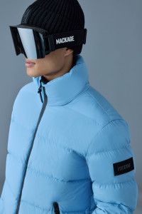 SAMUEL-SKI is a light sustainable CRS-certified down ski jacket for men featuring a removable snap hood fitted with an adjustable drawcord storm visor. Designed for comfort with a stretch shell, the classic cut can be customized for warmth with a drawcord hem and adjustable branded Velcro tab cuffs. Insulated slanted zip waist pockets offer further adaptability. An updated essential with leading performance, perfect for any ski day. - Medium down ski jacket - GRS-certified recycled down - Removable snap hood - Adjustable drawcord storm visor - Center front zip closure with stand collar - Insulated zip waist pockets - Elastic bottom hem with adjustable drawcord - Elastic cuffs - Adjustable branded Velcro tab cuffs - Adjustable drawcord hem - Regular fit for comfort and style SIZE & FIT - REGULAR – Classic fit allowing comfort and style. - Designed to be worn with heavier layers. - The model is 6'2" (187 cm) and wears a size 40. - Length from shoulder to hem: 27 ½'' / 69 cm. COMPOSITION & CARE INSTRUCTIONS - Shell: 82% recycled nylon, 18% elastane/spandex. Combo: 82% polyester, 18% elastane/spandex. Lining: 82% recycled nylon, 18% elastane/spandex. Filling: 90% goose down, 10% feathers. Water-repellent & Water-resistant. - Close zippers. Remove fur, remove the puller. Washi nside out. Wash in domestic machine in water not exceeding 40°C, at normal setting. Use mild detergent. Remove immediately after washing. Do not soak. Tumble dry low heat with tennis balls, until fully dried (1 to 3 hours). Do not wet-clean. Do not bleach. Do not wring. Do not iron or press. Dry clean using oil-based solvent only. Do not use perchloroethylene.