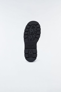 STORM-M is an ankle-high winter boot for men with a Chelsea silhouette and lined in plush shearling. The sustainable (R) Leather upper is anchored by a lightweight block heel lug sole. Expertly designed for warmth with a soft shearling lining, elastic panels and sleek lines ensure form-fitting comfort. A reimagined icon handcrafted for winterproof protection. DETAILS - Lightweight pull-on Chelsea (R) Leather winter boot - Deep Cold: Down to -20°C - Chunky rubber lug sole with bifurcated heel - Rounded toe silhouette - Shearling lining - Elastic side gussets for comfort - Sustainable (R) Leather upper - Backstay with easy-pull tab - Contrast lettermark on heel - Water resistant and repellent - Handcrafted in Italy - Performance tested for Canadian winters COMPOSITION & CARE - Shell: 100% cow leather. Sole: 100% rubber. Lining: 100% sheep leather. Water-resistant. - Wash gently by hand