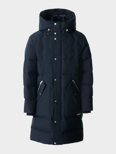 WERNER-Z is a quilted down parka with diamond-quilted detailing and a removable lightweight bib for added insulation. Water-resistant and repellent, it features a storm visor hood with bungee adjustment for extra coverage. Snap-flap pockets, and rib knit cuffs add enhanced functionality. A bold and versatile winter essential engineered for deep cold. DETAILS - Long quilted down parka with removable bib - Temperature Rating: -20°C - Diamond quilted yoke and removable bib - Removable bib in lightweight down - Storm visor hood with bungee drawcord - Rib knit collar and cuffs - Center front zip closure with snap placket - Double-entry waist pockets with snap-flap - Inner welt pocket with zipper - Signature M logo metal branding - Fully lined - Regular fit SIZE & FIT - REGULAR – Classic fit allowing comfort and style. - Designed to be worn with heavier layers. - The model is 6'2" (187 cm) and wears a size 40. - Coat length from shoulder to hem: 39'' / 29 cm. COMPOSITION & CARE - Shell: 59% polyamide/nylon, 41% polyester. Lining: 100% recycled nylon. Filling: 90% down, 10% feathers. Water-repellent, water-resistant. - Dry clean by leather specialist using oil based solvent only. Do not use perchloroethylene.