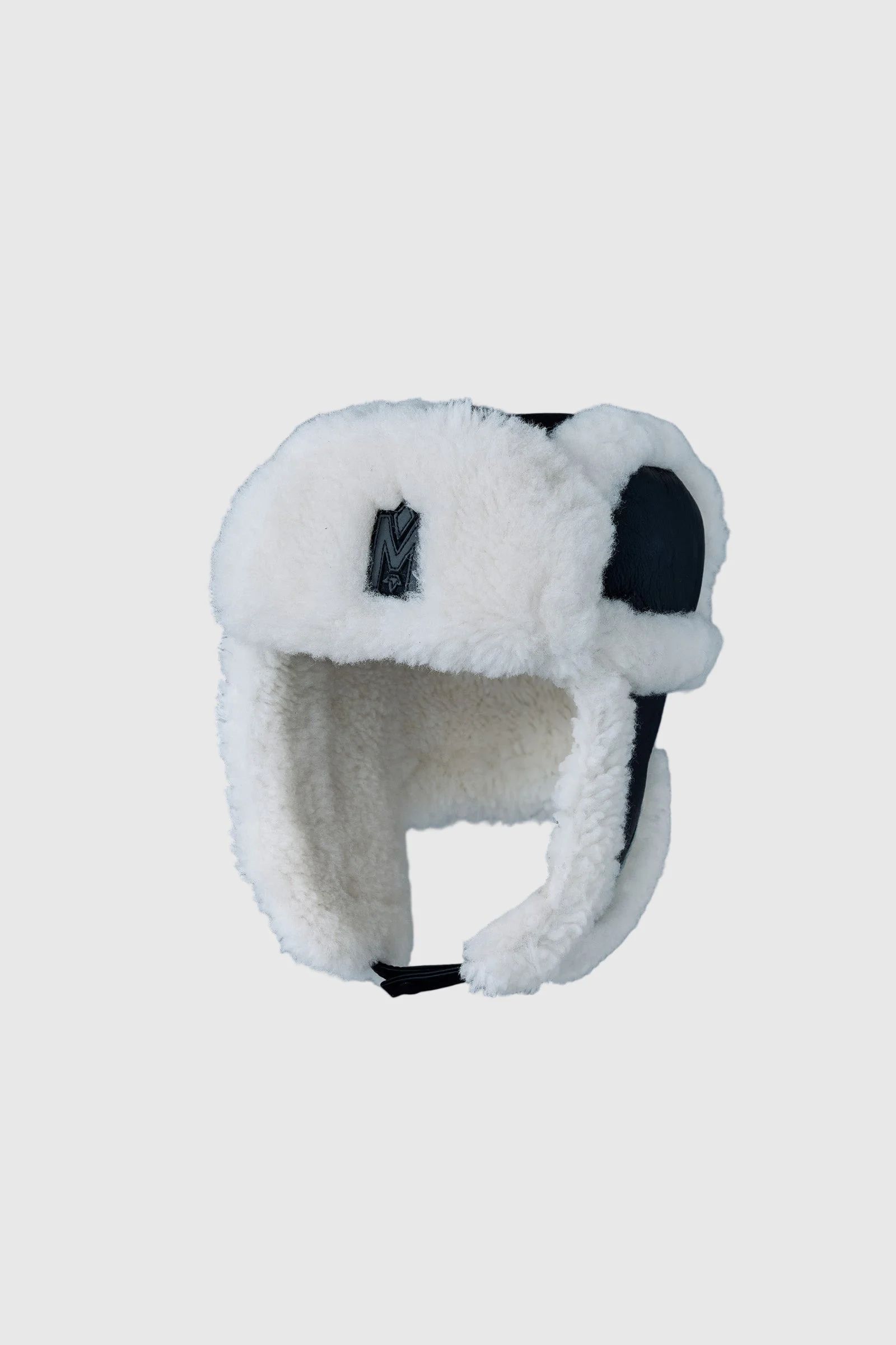 ZAYN in a shearling aviator hat for men & women with a supple and protective (R) Leather shell. The M logomark outline embroidery adds a refined accent. A modern update on a vintage winter classic. DETAILS - Shearling aviator hat - (R) Leather shell - Embroidered M logomark COMPOSITION & CARE - Shell: 100% lamb leather. Combo: 100% sheep leather. - Hand wash only