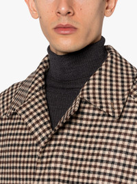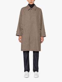 Description Marrying authentic British design with a fresh outlook, the Belford wool coat is cut to a Balmacaan-inspired shape with a modern rendition of the iconic shepherd check. Its relaxed profile is compounded by the raglan sleeves and streamlined silhouette. Size & Fit Model is 187cm and wears size 38/M Details & Care Belford Brown Shepherd Check Wool Balmacaan Coat Beige, black, camel brown Point collar Long raglan sleeves with button adjusters at cuffs Slip side pockets with button fastening Single vent Internal hanging chain loop Concealed button front fastening Regular fit 100% wool; lining: 100% cupro Fabric weight: 540g m (148cm) Dry clean only Made in the United Kingdom Style ID: MO9012 Model: BELFORD GM-1168F/WO AHE03