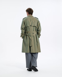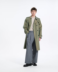 This classic trench coat is modernly tailored with beautifully cut patterns while retaining authentic details such as epaulets, gun patches, and inverted pleats. Equipped with a detachable liner made from FOX BROTHERS brown glen check wool, this piece can be worn all season. Made in: Japan Fabric: Gabardine cotton Attributes: Water repellent. Supima Cotton fabric Detailing: Epaulettes. Gun patches. Belted cuffs & collar Item code: OC0914 SIZE & FIT Fit: Oversized Model: Theo is wearing a UK size 40. Height: 188cm. Weight: 76kg. Chest: 95cm. Waist: 76cm. Hips: 81cm FABRIC & CARE Composition: 100% Cotton Washing: Dry clean only