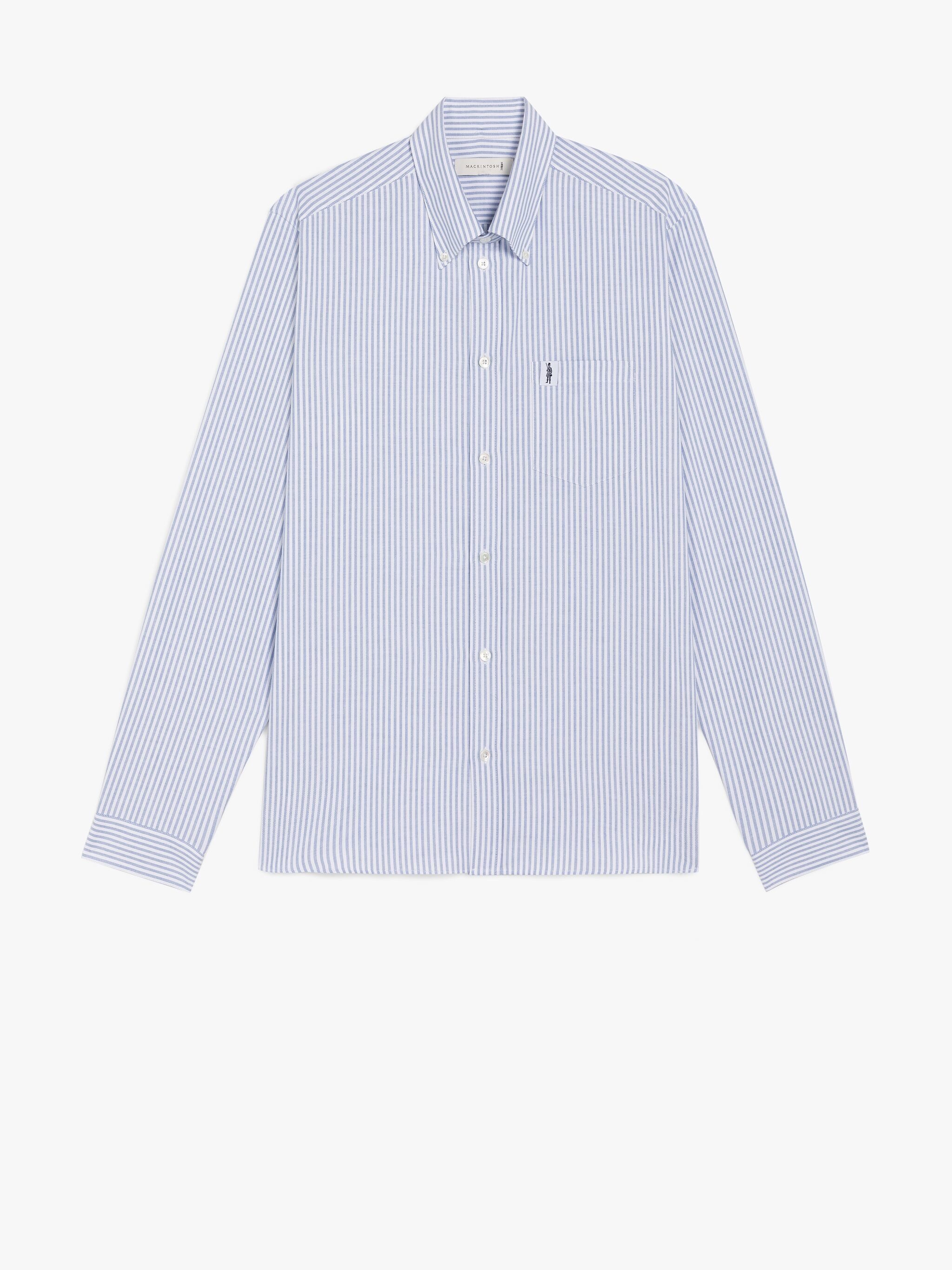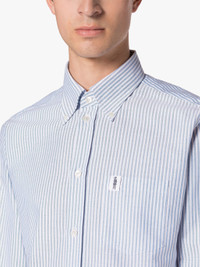 Description The Bloomsbury shirt offers a modern update on tailored elegance. It's cut from navy and white striped cotton to a classic silhouette and finished with refined details: a neat button-down collar and a Dandy Man logo tab at the chest. Size & Fit Model wears size M Model measures: chest 35”/89cm, height 73”/185cm, waist 28”/72cm, hips 36”/91cm Details & Care Bloomsbury Navy & White Cotton Shirt Button-down point collar Long sleeves with button cuffs Patch chest pocket with logo tab Curved hem Button front fastening 100% cotton Machine wash cold Style ID: SH0231 Model: BLOOMSBURY SHIRT AHL01