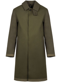 cotton trench coat Highlights - Olive green - Cotton - Concealed front fastening - Classic collar - High neck - Long sleeves - Contrasting border - Central rear vent - Mid-length Made in United Kingdom Composition Cotton 100%