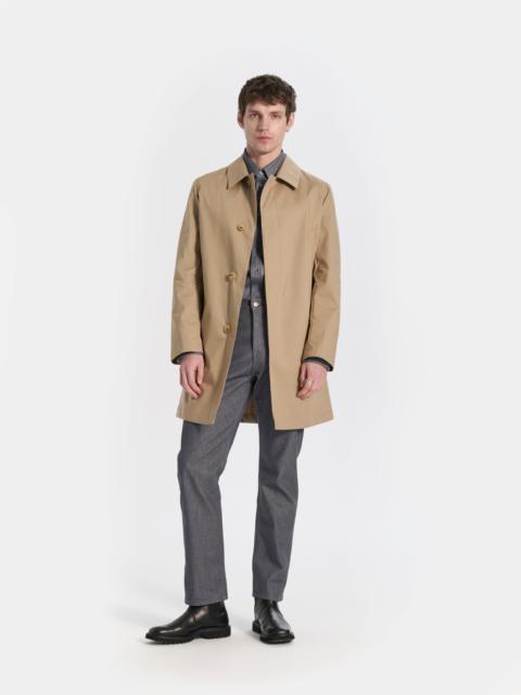 Made from Raintec, this version of the Dunkeld is a weatherproof and breathable 3/4 length coat that features a concealed button placket, throat latch and slit pockets. The Dunkeld is a clean-cut and contemporary single breasted coat designed to keep the weather out and keep you looking sharp even if the weather is changeable. Fabric: Raintec Attributes: Raintec waterproof fabric. Concealed button placket. Throat latch Detailing: Single-breasted coat. Sophisticated collar shape. Three-dimensional pattern Item code: MO9210 SIZE & FIT Fit: Regular Model: Theo is wearing a UK size 40. Height: 188cm. Weight: 76kg. Chest: 95cm. Waist: 76cm. Hips: 81cm FABRIC & CARE Composition: 100% Cotton Washing: Dry clean only