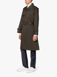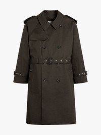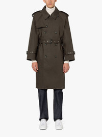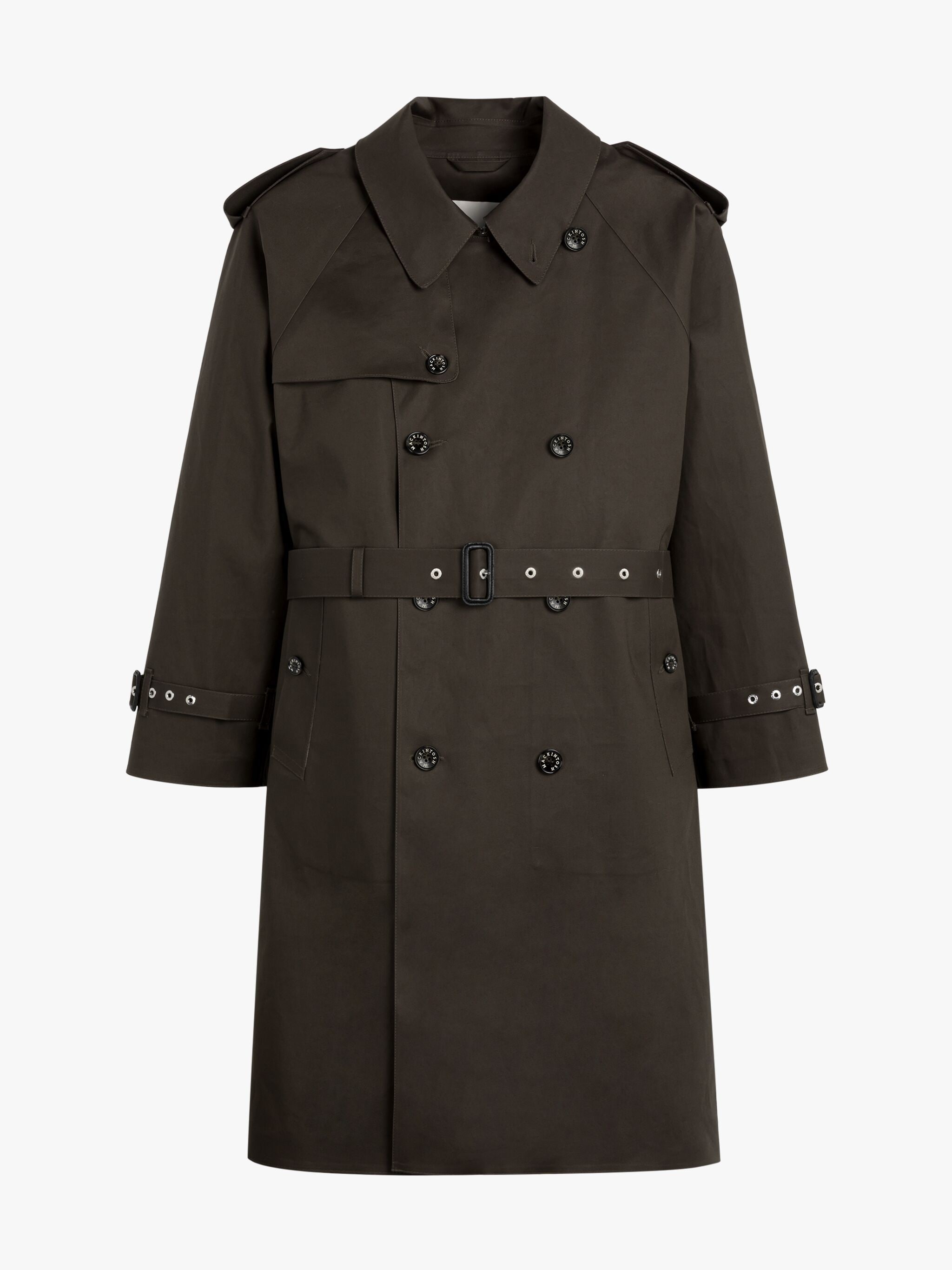 Description Rooted in tradition, the Earlston trench coat is meticulously handcrafted in our factory in Scotland from waterproof bonded cotton using time-honoured techniques that date back to the early 19th century. Hallmark elements – like the double-breasted silhouette, epaulettes and storm flaps – remain, while silver-tone eyelets and the belt and cuffs bring it up to date. Size & Fit Model is 187cm and wears size 38/M Details & Care Earlston Chocolate Bonded Cotton Trench Coat Cedar brown Waterproof Point collar Epaulettes Long raglan sleeves with buckle adjusters at cuffs Underarm eyelets Storm flap with button fastening at chest Detachable waist belt with buckle fastening Slip side pockets with button fastening Storm flap with button fastening at back Single vent Internal hanging loop Fully taped seams Unlined Double-breasted button fastening Oversized fit 100% cotton (bonded) Fabric weight: 373g / ㎡ Do not wash or dry clean Handmade in Scotland Style ID: RO6499 Model: EARLSTON GR-1051 IDJ12